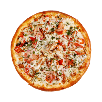 sos, ser, kurczak, szynka, boczek, papryka, pieczarki, oregano